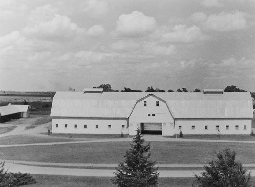 A fire in 1939 destroyed the mule barn, dairy barn, and implement shed, along with 30 tons of hay, implements, harnesses, and other equipment. Station employees, however, saved 30 head of cattle, 32 mules, and 7 horses. Later that year, a grant was received to replace the loss. Three buildings were constructed: a horse and mule barn of 16,960 square feet with a 260-ton hay loft, a dairy barn of 10,324 square feet with two silos, 30 milking stalls, a separate milk cooling department and space for 75 tons of feed, and an implement shed containing machinery and a blacksmith shop. The dairy barn was located on the south side of Deer Creek adjoining the horticulture field. The other new buildings were located east of the three-story office building.